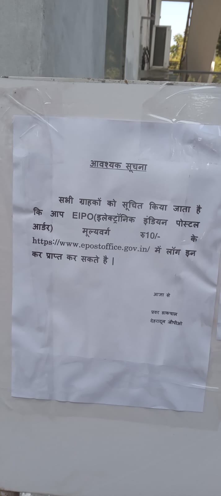 देहरादून डाक घर में 10 रूपये के i. P. O उपलब्ध करवाने के लिये केंद्रीय डाक तार मंत्री अश्वनी वैस्नव का आभार जताया
