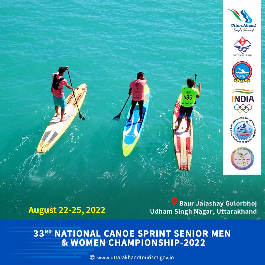 उत्तराखंड में वॉटर और साहसिक स्पोर्टस को बढ़ावा देने के लिए 33 वीं कैनो स्प्रिंट राष्ट्रीय चैम्पियनशिप का आयोजन 22 से 25 अगस्त के बीच होगा। ऊधमसिंह नगर जिले के बौर जलाशय गूलरभोज में इस प्रतियोगिता का आयोजन किया जाएगा। सीनियर महिला एवं पुरुष वर्ग के लिए आयोजित इस प्रतियोगिता में देश भर से प्रतिभागी शामिल होंगे।