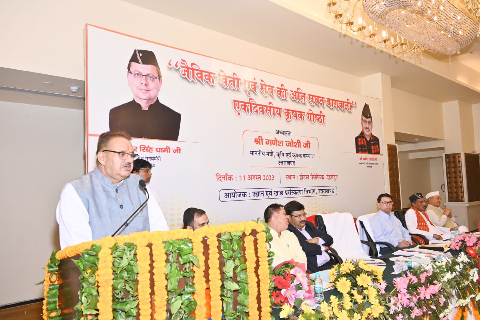 देहरादून 11 अगस्त। उत्तराखण्ड में जैविक खेती एवं सेब की सघन बागवानी को बढावा देने के उद्देश्य से एक दिवसीय कृषक गोष्ठी का उद्घाटन सुबे के कृषि एवं कृषक कल्याण मंत्री गणेश जोशी द्वारा दीप प्रज्जवलित कर किया गया।