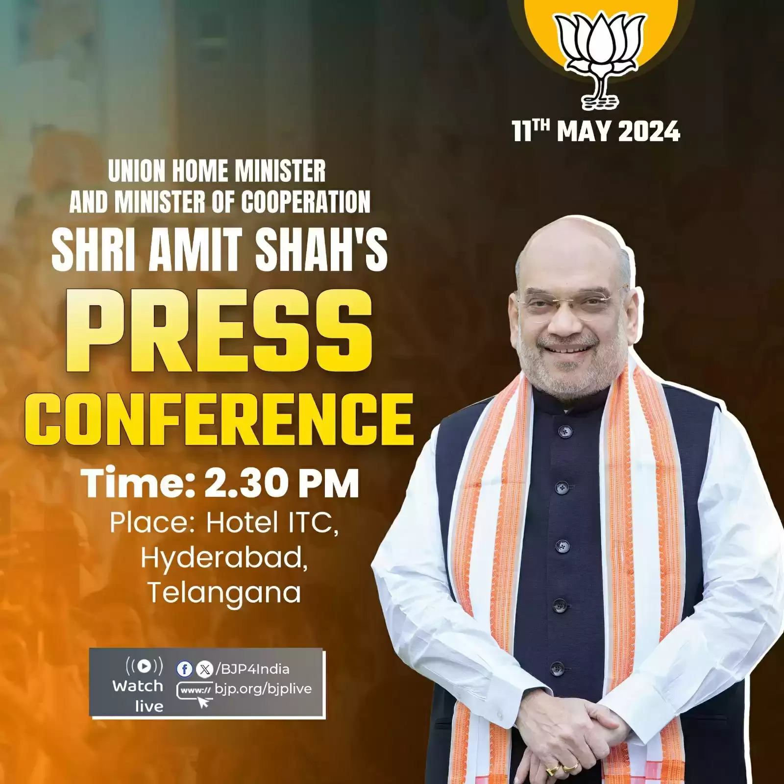 भाजपा के एक्स हैंडल के अनुसार शाह आज सबसे पहले चुनाव प्रचार की शुरुआत तेलंगाना में करेंगे। तेलंगाना में पहली जनसभा सुबह 10ः30 और दूसरी 12ः30 बजे होगी। इसके बाद वो हैदराबाद में दोपहर ढाई बजे संवाददाता सम्मेलन को संबोधित करेंगे। इस संवाददाता सम्मेलन पर मीडिया की नजर लगी हुई है। माना जा रहा है कि शाह कोई बड़ी बात देश के सामने रख सकते हैं। भाजपा के अनुसार शाह शाम को प्रधानमंत्री नरेन्द्र मोदी की संसदीय निर्वाचन क्षेत्र वाराणसी में होंगे। शाह वाराणसी के दशाश्वमेधघाट पर शाम छह बजे गंगा आरती कार्यक्रम में हिस्सा लेंगे।