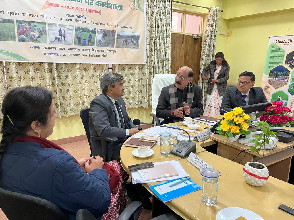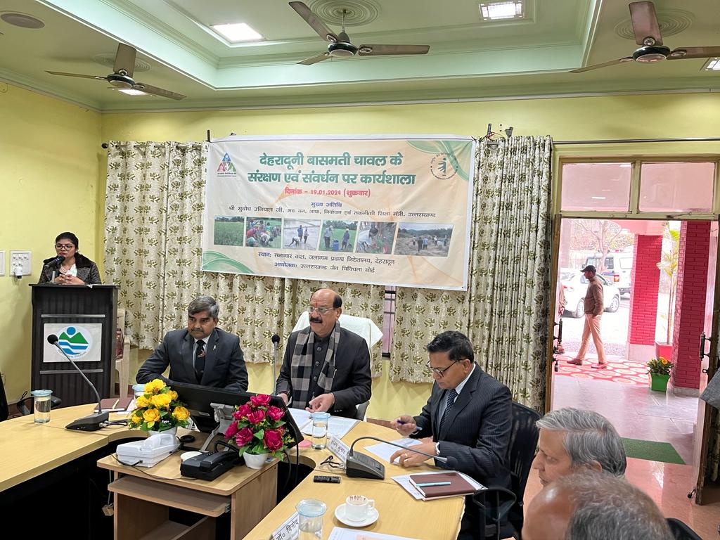 उत्तराखण्ड जैव विविधता बोर्ड द्वारा देहरादूनी बासमती धान के संरक्षण एवं संवर्धन के अर्न्तगत एक महत्वपूर्ण कार्यशाला दिनांक 19.01.2024 को सभागार कक्ष जलागम प्रबन्धन निदेशालय, देहरादून में आयोजित की