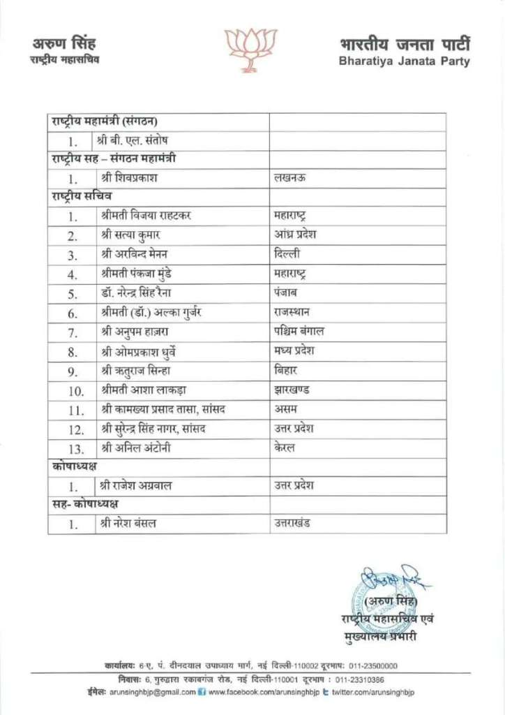 भाजपा ने नए राष्ट्रीय उपाध्यक्ष और महामंत्रियों का किया एलान