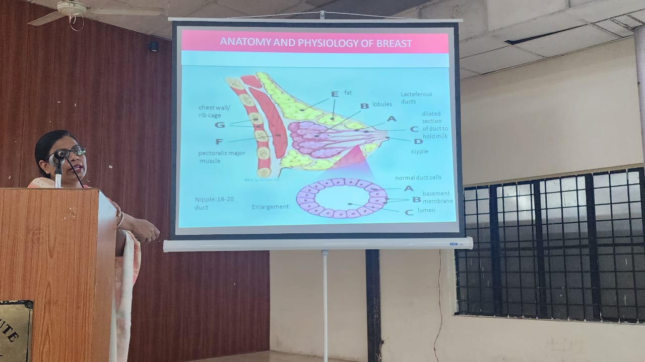 डॉ. सुजाता संजय ने छात्र-छात्राओं को स्तनपान के महत्व के बारे में बताया कि मातृत्व स्त्री के जीवन की संपूर्णता एवं सार्थकता समझी जाती है। इस वर्ष की थीम स्तनपान के लिए संकल्प-कामकाजी माता-पिता के लिए विशेष प्रयास है। उन्होंने बताया कि स्तनपान हर बच्चे का अधिकार है। ऑफिस संस्थानों को इस बारे में जागरूक करने की आवश्यकता है, जिससे कामकाजी महिलाएं अपने बच्चों को समुचित स्तन पान करा सकें। यदि प्रत्येक ऑफिस में कामकाजी महिलाओं की जरूरत के हिसाब से सुविधाजनक ब्रेस्टफीडिंग कक्ष की व्यवस्था हो तो महिला कर्मचारियों की कार्य क्षमता में तेजी आ सकती है। वर्ल्ड इकोनामिक फोरम के ग्लोबल जेंडर रिपोर्ट 2020 के अनुसार भारत में 20.33 फीसदी कामकाजी महिलाएं हैं, जिनमें से केवल 40 फीसदी कामकाजी माताएं ही अपने बच्चों को 6 माह तक स्तनपान और 2 साल तक की पूरक भोजन के साथ विशेष रूप से ब्रेस्ट फीडिंग करा पाती हैं।