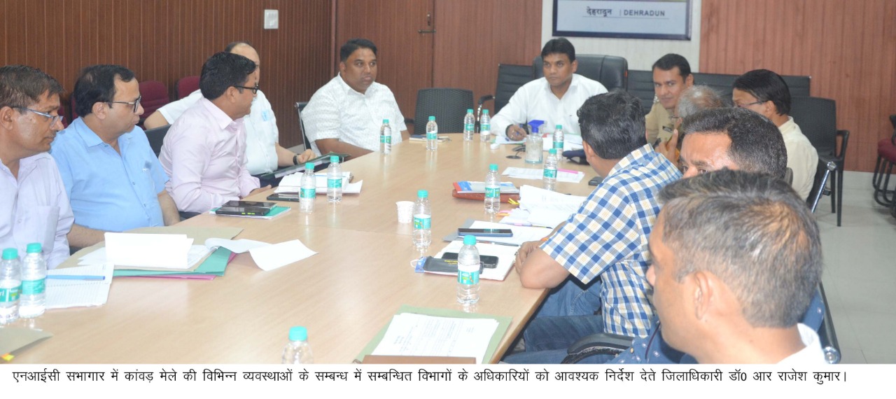 वीडियो कान्फ्रेसिंग के पश्चात जिलाधिकारी डाॅ0 आर राजेश कुमार ने एनआईसी सभागार में उपस्थित संबंधित अधिकारियों को जनपद में कांवड़ मेले हेतु की जाने वाली तैयारी एवं व्यवस्थाओं के संबंध में आवश्यक दिशा-निर्देश दिए। जिलाधिकारी ने उपजिलाधिकारी ऋषिकेश को निर्देश दिए कि पार्किंग व्यवस्था हेतु कांवड़ मेला समिति के माध्यम से टेंडर व्यवस्था करने के निर्देश दिए साथ ही पार्किंग की अतिरिक्त व्यवस्था हेतु स्थल चयन करने तथा पार्किं स्थलों पर मोबाइल ट्ाॅयलेट लगाने के भी निर्देश दिए।