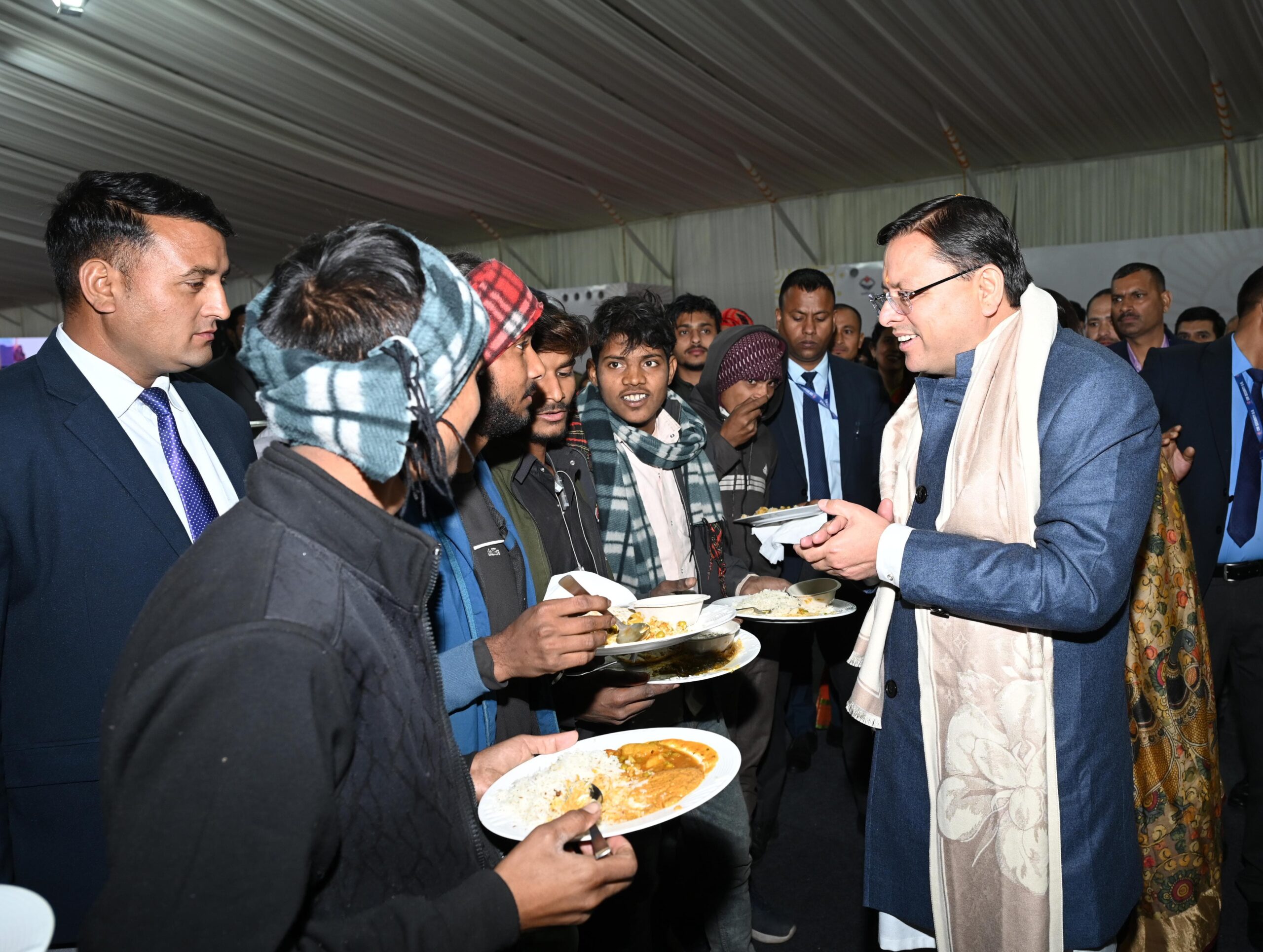 मुख्यमंत्री श्री पुष्कर सिंह धामी ने रविवार को एफ.आर.आई. में सूचना एवं लोक सम्पर्क विभाग द्वारा प्रकाशित विकास पुस्तिका विमोचन के पश्चात पिछले एक सप्ताह से ग्लोबल इंवेस्टर्स समिट की व्यवस्थाओं से जुड़े श्रमिकों एवं पर्यावरण मित्रों के साथ भोजन कर उनके अथक परिश्रम की सराहना कर धन्यवाद दिया।