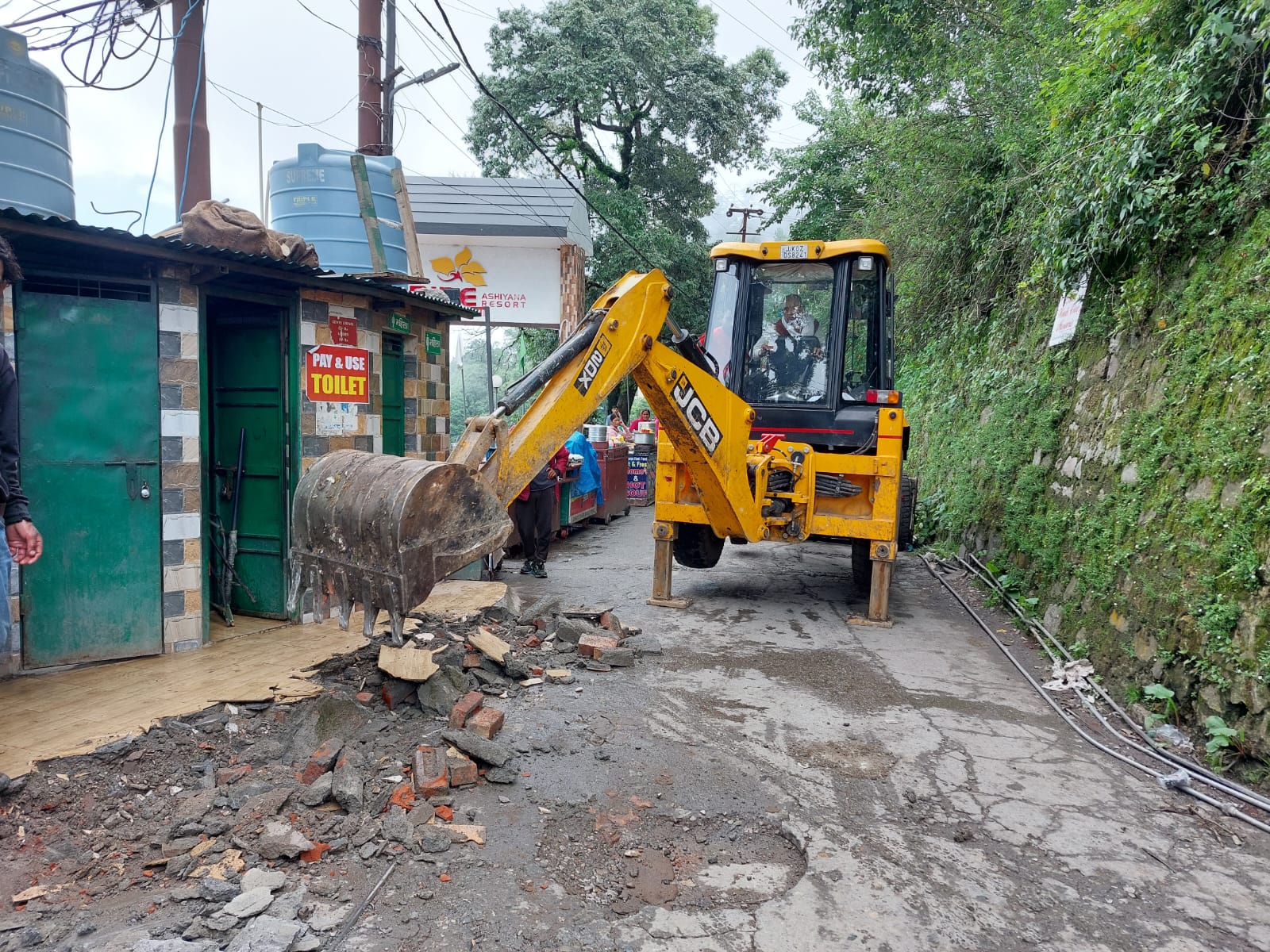 जिलाधिकारी डाॅ0 आर राजेश कुमार के निर्देशों के अनुपालन में उपजिलाधिकारी नरेश चन्द्र दुर्गापाल के नेतृत्व में आज आठवें दिवस में मसूरी क्षेत्रान्तर्गत अवैध अतिक्रमण को चिन्हित कर ध्वस्तीकरण/हटाये जाने की कार्यवाही गतिमान है। राजस्व, लोनिवि, राष्ट्रीय राजमार्ग एवं नगर पालिका परिषद की संयुक्त टीम द्वारा कैमल बैक रोड़, स्प्रिंग रोड़, आदि चिन्हित स्थलों में अवैध अतिक्रमण/निर्माण का हटाने/ध्वस्तीकरण किया जा रहा है। साथ ही रोड़ पर रखी सामग्रीं को भी हटाया गया। संयुक्त टीम द्वारा क्षेत्रान्तर्गत अतिक्रमण को चिन्हिकरण करने का कार्य गतिमान है।