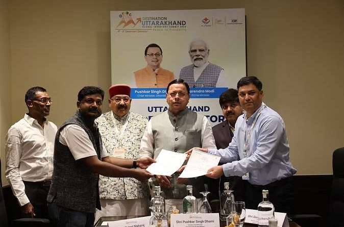उत्तराखंड में आगामी दिसंबर माह में होने वाले वैश्विक निवेशक सम्मेलन को लेकर मुख्यमंत्री पुष्कर सिंह धामी ने गुरुवार को चेन्नई में आयोजित रोड शो में प्रतिभाग किया। मुख्यमंत्री धामी ने इस दौरान विभिन्न सेक्टर्स से जुड़े निवेशकों के साथ बैठक की। इस दौरान उनके साथ कैबिनेट मंत्री सतपाल महाराज और सौरभ बहुगुणा भी मौजूद रहे। बैठक में सीएम धामी की उपस्थिति में हेल्थकेयर, फार्मा, एनर्जी सेक्टर से जुड़े विभिन्न उद्योग समूहों के साथ 10150 करोड़ से अधिक के एमओयू साइन किए गए।