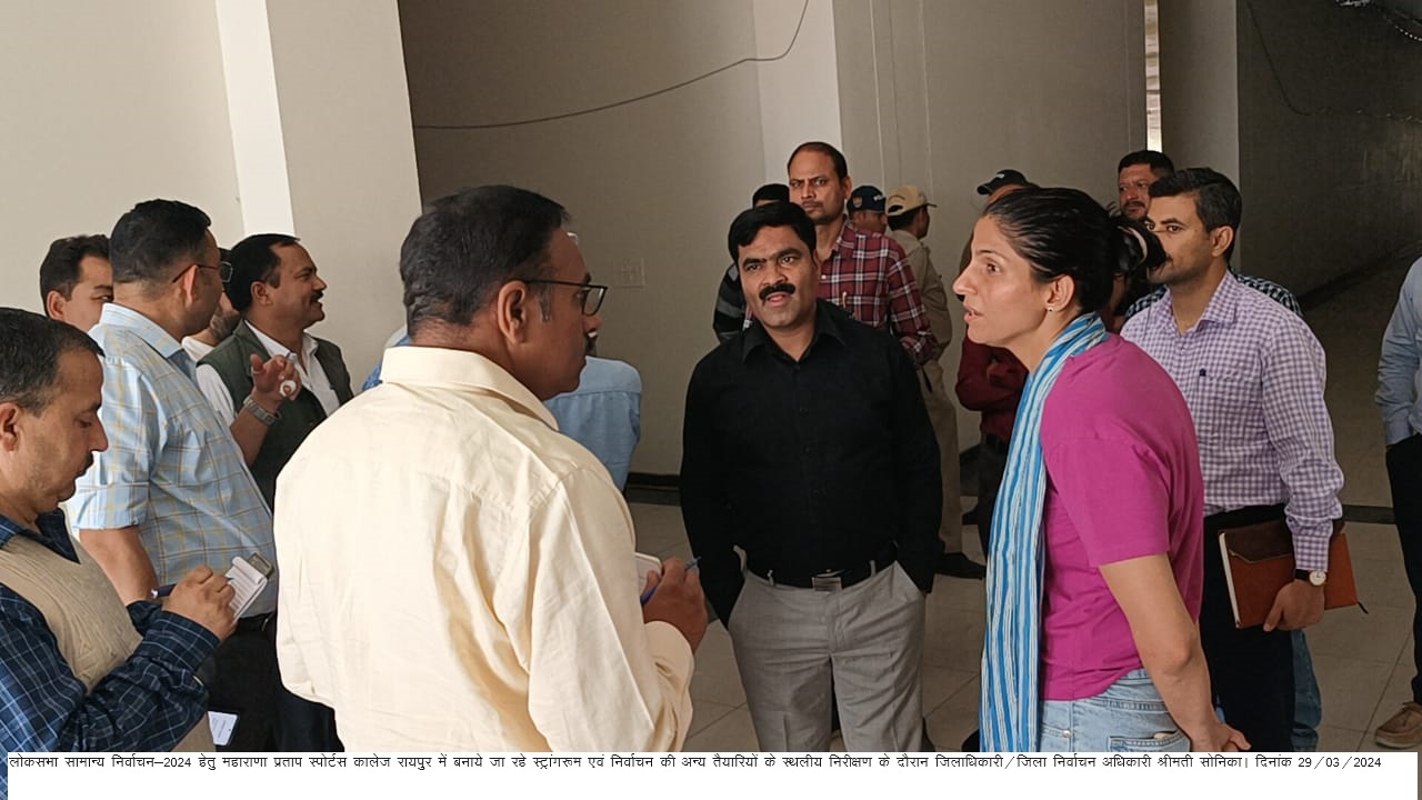 जिलाधिकारी/जिला निर्वाचन अधिकारी श्रीमती सोनिका ने आज महाराणा प्रताप स्पोर्टस कालेज रायपुर का स्थलीय निरीक्षण करते हुए