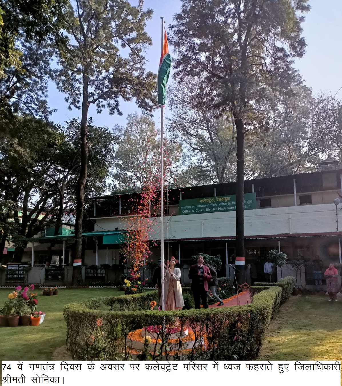 जिलाधिकारी श्रीमती सोनिका ने 74 वे गणतंत्र दिवस के अवसर पर कलेक्ट्रेट परिसर में ध्वज फहराया