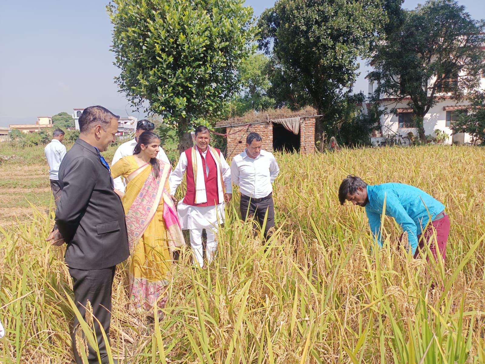 जिलाधिकारी श्रीमती सोनिका ने आज तहसील सदर के राजस्व ग्राम नकरौंदा मे प्रधानमंत्री फसल बीमा योजना अंतर्गत धान के फसल कटाई प्रयोग का निरीक्षण किया। जिसमें 43.30 वर्ग मीटर के प्लॉट में प्रथम खेत के काश्तकार जगदीश छेत्री के खेत में उपज 24.87 किलोग्राम एवं द्वितीय खेत के काश्तकार आनंद सिंह के खेत में में 18.64 किलोग्राम उपज प्राप्त हुई फसल कटाई प्रयोगों का संपादन राजस्व निरीक्षक ज्योतेंद्र नेगी एवं राजस्व उप निरीक्षक मेजर सिंह द्वारा किया गया। इन आंकड़ों का उपयोग उत्पादन एवं उत्पादकता का अनुमान लगाने हेतु किया जाता है।