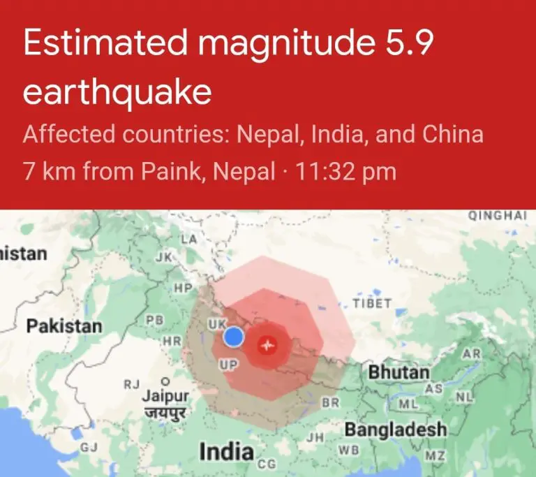 नेशनल सेंटर फॉर सिस्मोलॉजी ने जानकारी देते हुए बताया कि भूकंप का एपिसेंटर नेपाल में थारिक्टर स्केल पर इसकी तीव्रता 5.9 मापी गई है। जानकारी के अनुसार, ये भूकंप जमीन के 10 किमी नीचे आया था।