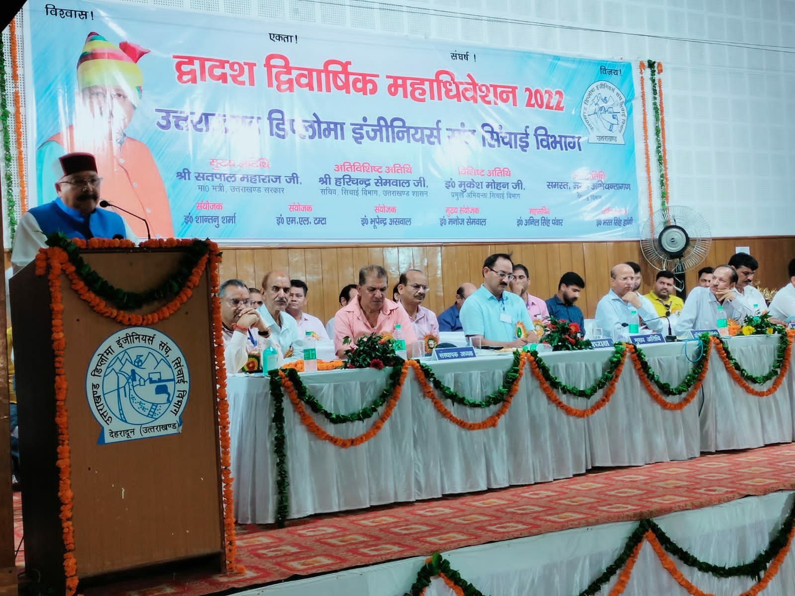 उत्तराखंड डिप्लोमा इंजीनियर्स संघ के द्वादश अधिवेशन में 22 विषयों पर आधारित मांग पत्र की अधिकांश मांगों सहमति जताते हैं हुए प्रदेश के सिंचाई मंत्री सतपाल महाराज ने कहा कि इस मांगों पर भी शीघ्र विचार किया जाएगा। सिंचाई विभाग के कर्मचारी संगठनों के प्रतिनिधियों, इंजीनियरों और विभाग के अधिकारियों को संबोधित करते हुए सिंचाई मंत्री ने कहा कि सिंचाई विभाग के पास योजनाओं की कमी नहीं रहने दी जाएगी।हमारा प्रयास होगा कि अधिकारियों की बैठक बुलाकर इस संबंध में दीर्घकालीन नीति बनाई जाए।