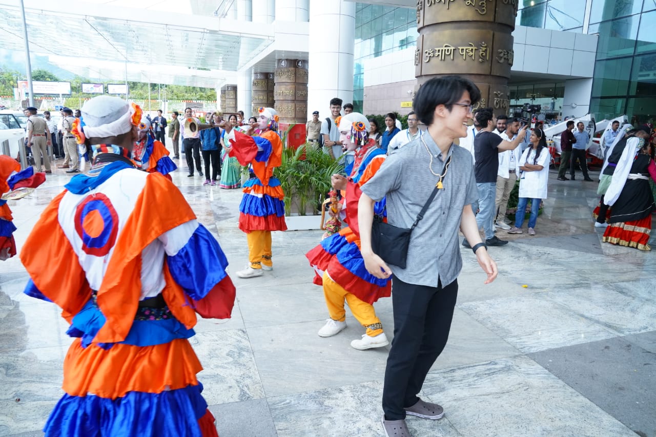 प्रतिनिधिमंडल दल के सदस्यों का जोलीग्रांट एयरपोर्ट पर स्थानीय परंपराओं के साथ किया गया भव्य स्वागत।
