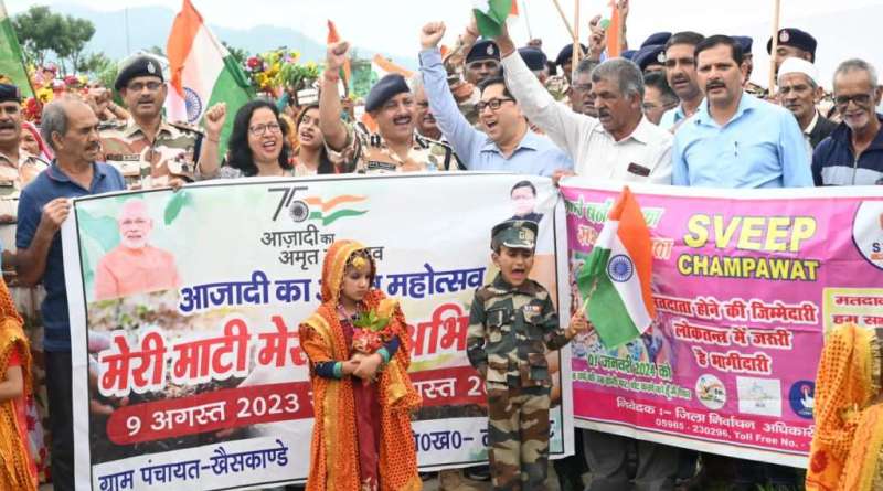 गत 9 अगस्त से शुरू हुए मेरी माटी मेरा देश अभियान के तहत प्रत्येक दिन जनपद में विभिन्न ग्राम पंचायतों में कार्यक्रम आयोजित किए जा रहे है। इसी क्रम में आज विधान सभा क्षेत्र लोहाघाट के सुई, खेसकांडे, मोत्यूराज आदि स्थानों मे मेरी माटी मेरा देश कार्यक्रम के साथ स्वीप जागरूकता अभियान का संचालन किया गया और लोगों को जागरूक एवं प्रेरित किया।