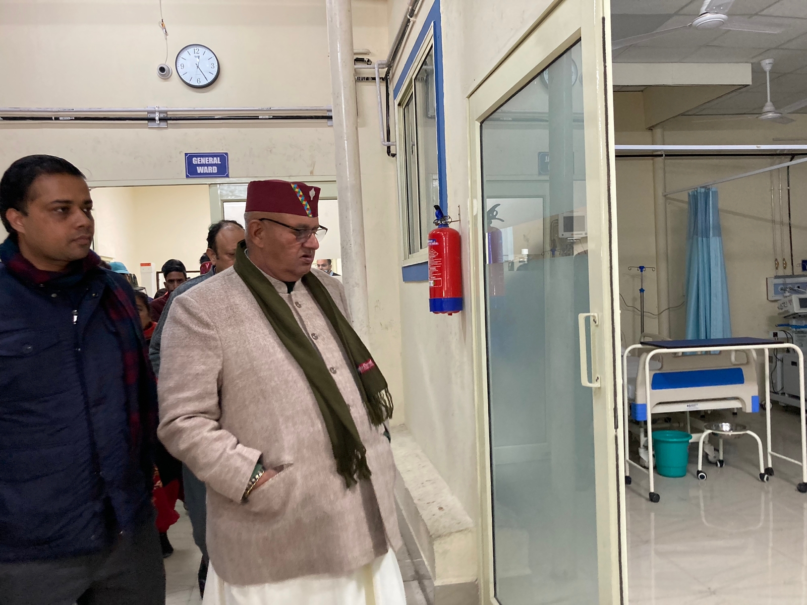 गढ़ी कैंट स्थित छावनी परिषद जनरल अस्पताल का निरीक्षण करते मंत्री जोशी।