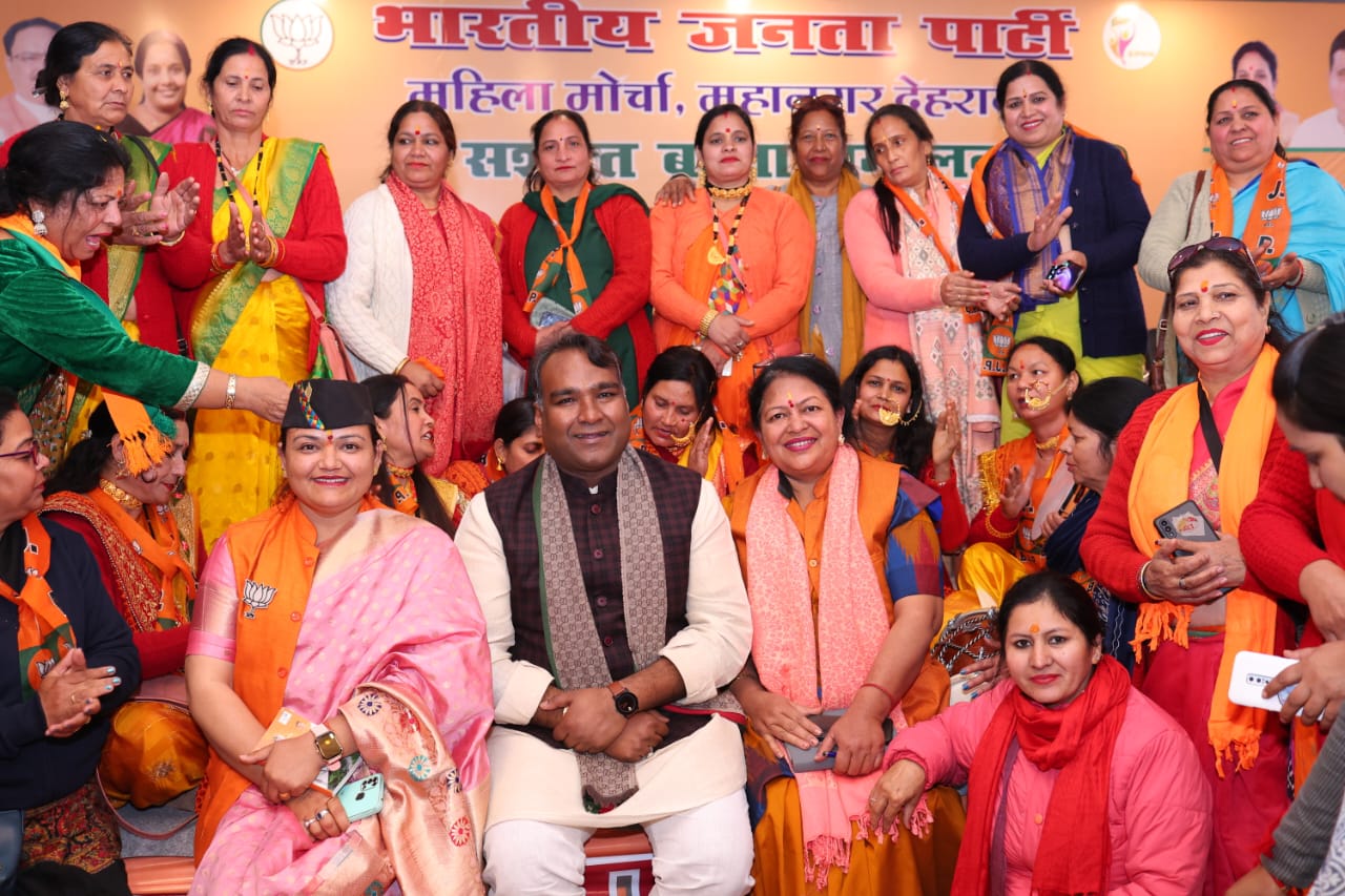 कार्यक्रम में महामंत्री संगठन अजेय कुमार जी प्रदेश उपाध्यक्ष एवं महानगर प्रभारी कुलदीप कुमार महानगर उत्तराखंड सरकार में कैबिनेट मंत्री गणेश जोशी जी, महानगर अध्यक्ष सिद्धार्थ उमेश अग्रवाल विधायक राजपुर खजान दास विधायक धर्मपुर विनोद चमोली विधायक रायपुर उमेश शर्मा सुनील उनियाल गामा राज्य मंत्री मधु भट्ट ,विनोद उनियाल, नेहा जोशी महिला मोर्चा प्रदेश महामंत्री गीता रावत वंदना ठाकुर महिला मोर्चा महानगर अध्यक्ष अर्चना बागड़ी महामंत्री सुषमा अमित मल्होत्रा आदि सैकड़ो की संख्या में महिला कार्यकर्ता उपस्थित रही।
