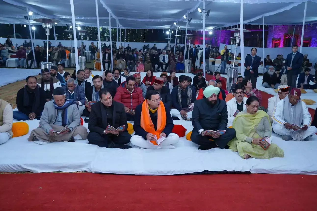 शुक्रवार सायं राज्यपाल ले.ज. गुरमीत सिंह और मुख्यमंत्री पुष्कर सिंह धामी की उपस्थिति में सुन्दरकांड के पाठ के आयोजन के साथ भव्य श्रीराम संध्या आयोजित हुई। भजन गायिका स्वाति मिश्रा और विवेक नौटियाल की प्रस्तुत किये गये सुन्दरकांड के सस्वर पाठ के भजनों से पूरा वातावरण राममय हो गया। सभी लोग श्रीराम की भक्ति में भव विभोर नजर आये। सुन्दरकांड के सस्वर सुन्दर पाठ से वातावरण और अधिक भक्तिपूर्ण बन गया था। सुन्दरकांड का पाठ करने वाली टीम में पंकज नौटियाल, सुधाुशु रतूड़ी और शिवा भट्ट भी शामिल रहे।