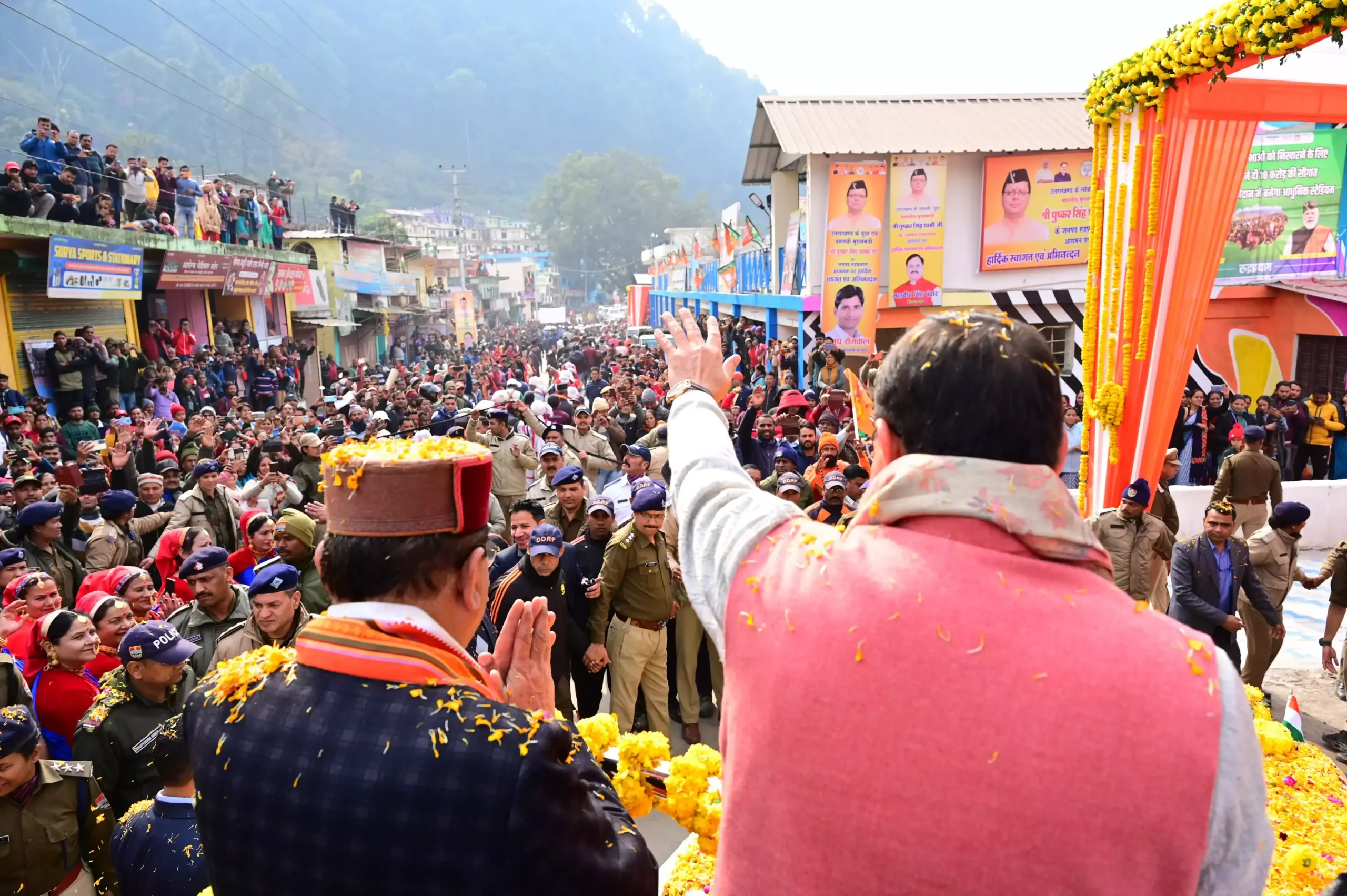 मुख्यमंत्री पुष्कर सिंह धामी रविवार को एक दिवसीय जनपद भ्रमण पर रुद्रप्रयाग पहुंचे। मुख्यमंत्री ने प्राचीन देवल से अगस्त्यमुनि के खेल मैदान तक आयोजित विशाल रोड शो कार्यक्रम में प्रतिभाग किया।