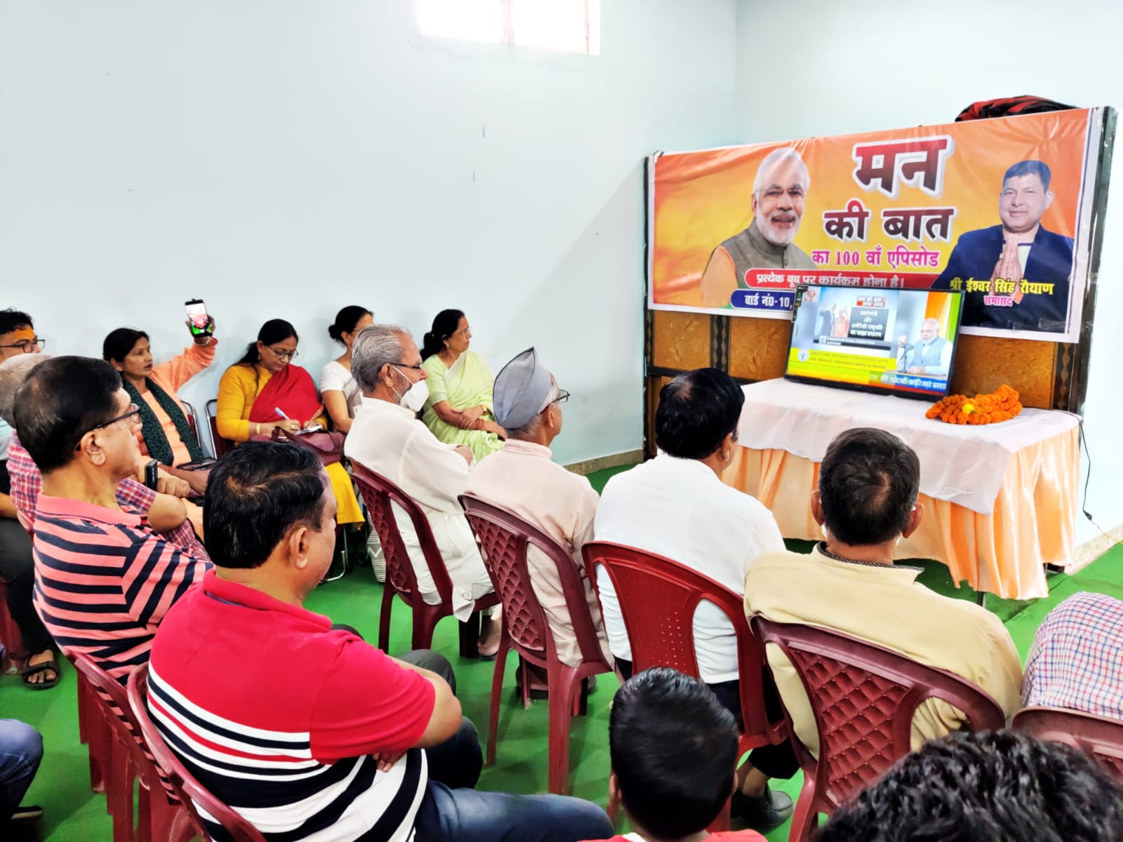 आज डोईवाला के भानियावाला में स्थित सिद्धिविनायक वेडिंग पॉइंट में आयोजित माननीय प्रधानमंत्री जी के मन की बात के इस 100वें संस्करण को राज्य महिला आयोग की अध्यक्ष ने वार्ड नंबर 10 में विभिन्न सामाजिक कार्यकर्ताओं और स्वयं सहायता समूहों की बहनों के साथ सुना।