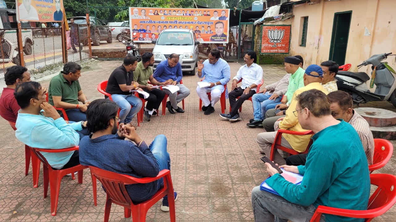 इस दोरान् बैठक में महानगर महामंत्री बिजेंद्र थपलियाल, सुरेंद्र राणा, मण्डल अध्यक्ष रूद्रेश शर्मा, संजीत मल्होत्रा, प्रकाश बडोनी, ज्योति कोटिया, प्रदीप रावत, पंकज शर्मा जी, राहुल लारा, महानगर उपाध्यक्ष, राजेंद्र सिंह ढिल्लों, सुनील शर्मा, महानगर मंत्री संदीप मुखर्जी, राजेश कांबोज, महानगर मंत्री संकेत नोटियाल, गोविन्द मोहन, विमल उनियाल, महानगर कोषाध्यक्ष मोहित शर्मा, कार्यालय प्रभारी विनोद शर्मा, मण्डल महामंत्री अरविन्द गुप्ता, गिरी गोस्वामी, देवेन्द्र गेरौला, अभिषेक नौडियाल, सौरभ शर्मा जी, अवधेश तिवारी, महानगर सोशल मीडिया आशीष शर्मा, सह सोशल मीडिया रंजीत सेमवाल, महानगर आईटी प्रभारी विपिन खण्डूड़ी, महानगर सह मीडिया प्रभारी अक्षत जैन, प्रदीप कुमार, हृदेश लूथरा, महानगर कार्यकारिणी सदस्य राजेश बडोनी, अरविन्द जैन, अनिल उनियाल, पार्षद कविन्द्र सेमवाल, विमल चौधरी जी, प्रवीन कुमार, दुर्गेश चोरसिया एवं अन्य भाजपा पदाधिकारी उपस्थित रहे।