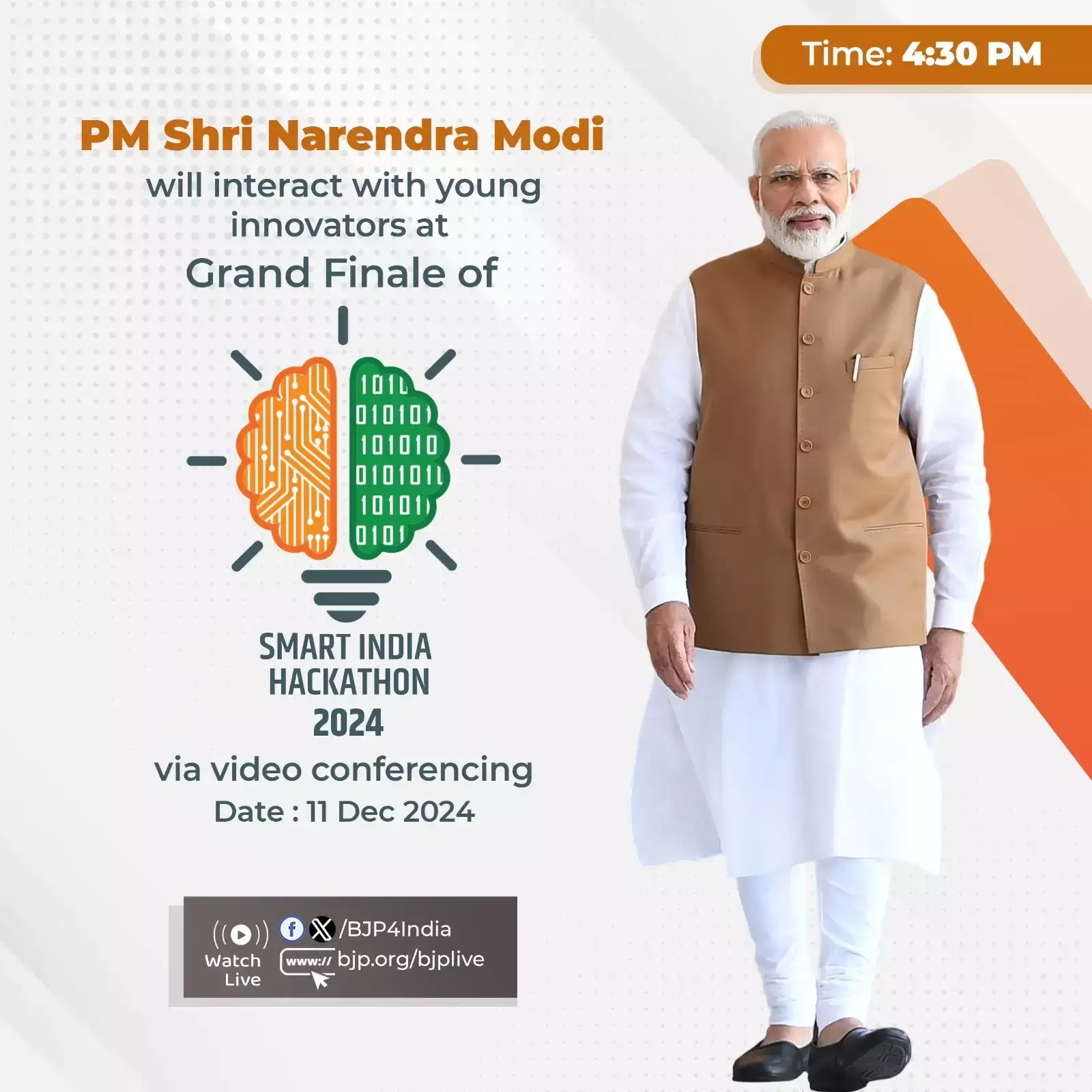 प्रधानमंत्री नरेन्द्र मोदी के आज दो महत्वपूर्ण कार्यक्रम हैं। वो आज महान तमिल कवि और स्वतंत्रता सेनानी सुब्रमण्यम भारती पर केंद्रित संग्रह को जारी करेंगे। साथ ही स्मार्ट इंडिया हैकथॉन-2024 के ग्रैंड फिनाले में युवा इनोवेटर्स के साथ वर्चुअली संवाद करेंगे। भारतीय जनता पार्टी (भाजपा) ने प्रधानमंत्री नरेन्द्र मोदी के आज के दोनों कार्यक्रमों की सूचना अपने एक्स हैंडल पर साझा की।भाजपा ने एक्स हैंडल पर लिखा, ”प्रधानमंत्री श्री नरेन्द्र मोदी 11 दिसंबर, 2024 को महान तमिल कवि और स्वतंत्रता सेनानी सुब्रमण्यम भारती के संपूर्ण कार्यों का एक संग्रह जारी करेंगे।” यह कार्यक्रम दोपहर एक बजे सात कल्याण लोक मार्ग पर होगा। भाजपा ने एक्स हैंडल पर दूसरी पोस्ट में सूचित किया, ”प्रधानमंत्री श्री नरेन्द्र मोदी 11 दिसंबर, 2024 को स्मार्ट इंडिया हैकथॉन-2024 के ग्रैंड फिनाले में युवा इनोवेटर्स के साथ वर्चुअली बातचीत करेंगे।” यह कार्यक्रम शाम साढ़े चार बजे होगा।भारत सरकार के पत्र एवं सूचना कार्यालय (पीआईबी) की एक विज्ञप्ति के अनुसार, ग्रैंड फिनाले में देशभर के 51 नोडल केंद्रों पर 1300 से अधिक विद्यार्थियों की टीमें भाग लेंगी। स्मार्ट इंडिया हैकथॉन का यह सातवां संस्करण है। इसका सॉफ्टवेयर संस्करण 36 घंटे तक लगातार चलेगा।हार्डवेयर संस्करण आज से से 15 दिसंबर तक जारी रहेगा। इस वर्ष का संस्करण कुछ खास है। इसकी विषय वस्तु में इसरो के ‘चंद्रमा पर अंधेरे वाले क्षेत्रों के चित्रों को बढ़ाना’, जल शक्ति मंत्रालय के ‘एआई, उपग्रह डेटा, आईओटी एवं गतिशील मॉडल का उपयोग करके वास्तविक समय में गंगा जल की गुणवत्ता की निगरानी प्रणाली विकसित करना’ और आयुष मंत्रालय के ‘एआई के साथ एकीकृत एक स्मार्ट योगा मैट विकसित करना’ समाहित किया गया है।