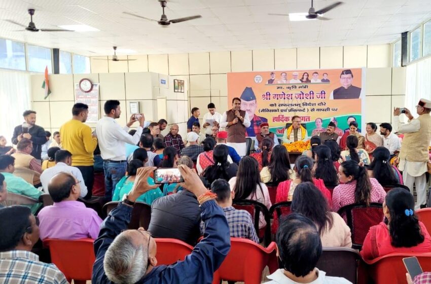 उत्तराखंड (देहरादून),बुधवार 1 नवंबर 2023 उत्तराखंड के कैबिनेट मंत्री गणेश जोशी जी के सफल 10 दिवसीय विदेश दौरे से लौटने पर महानगर के अध्यक्ष सिद्धार्थ उमेश अग्रवाल द्वारा स्वागत अभिनंदन किया गया। स्वागत के दौरान कैबिनेट मंत्री गणेश जोशी जी ने सभी कार्यकर्ताओं का धन्यवाद ज्ञापित किया और बताया कि कौसाम्ब के अध्यक्ष होने के […]Read More