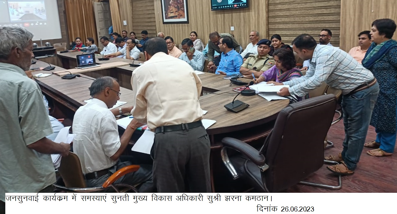 मुख्य विकास अधिकारी सुश्री झरना कमठान की अध्यक्षता में ऋषिपर्णा सभागार कलैक्ट्रेट में जनसुनवाई कार्यक्रम का आयोजन किया