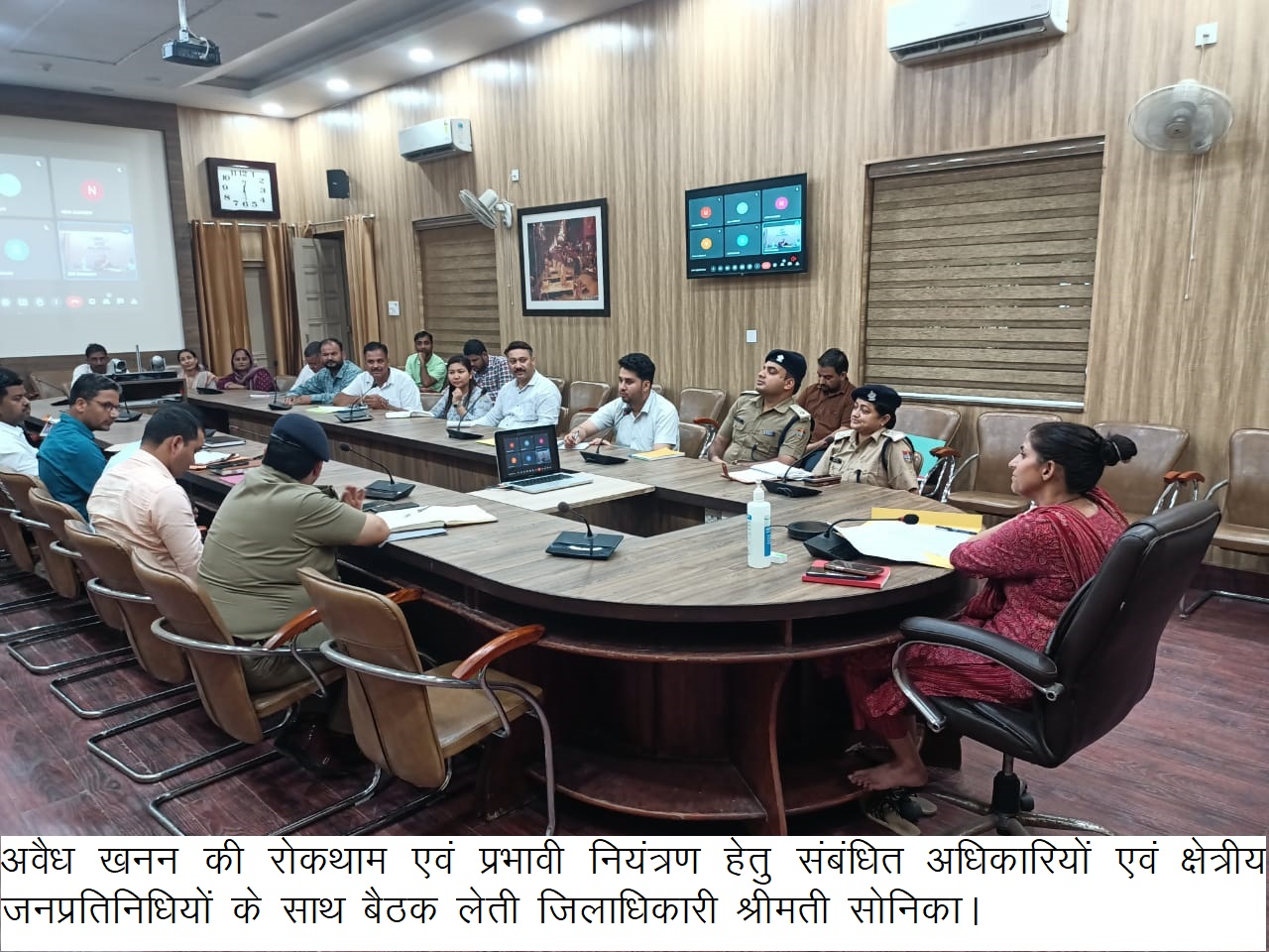 जिलाधिकारी श्रीमती सोनिका की अध्यक्षता में ऋषिपर्णा सभागार कलैक्ट्रेट में अवैध खनन की रोकथाम एवं प्रभावी नियंत्रण हेतु संबंधित अधिकारियों एवं क्षेत्रीय जनप्रतिनिधियों के साथ बैठक आयोजित की