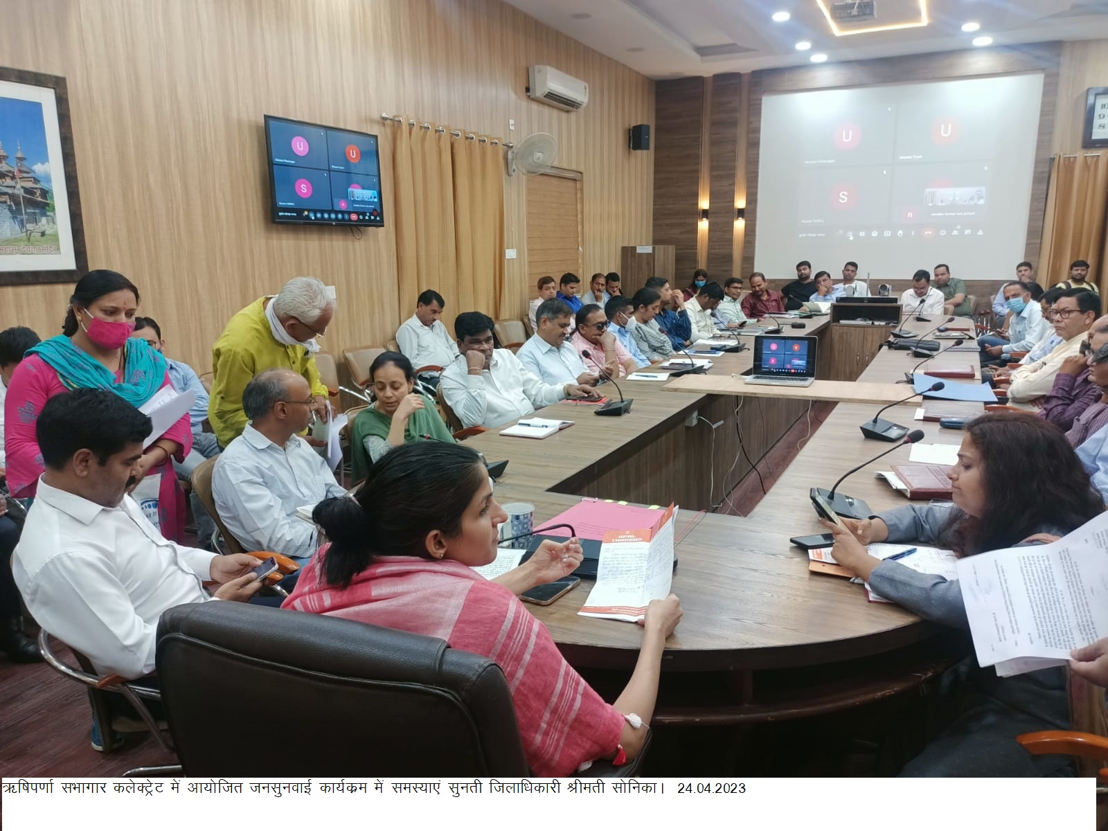 जिलाधिकारी श्रीमती सोनिका की अध्यक्षता में ऋषिपर्णा सभागार कलेक्ट्रेट में जनसुनवाई का आयोजन किया