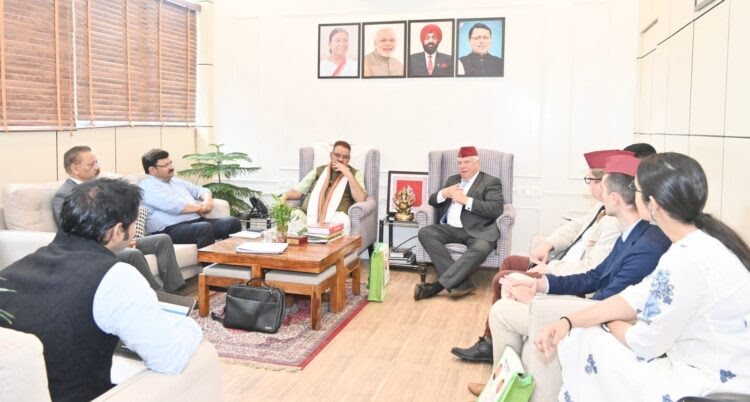 देहरादून – बुधवार को प्रदेश के कृषि एवं कृषक कल्याण मंत्री गणेश जोशी से उनके शासकीय कार्यालय में जर्मन सांसदों के एक प्रतिनिधिमंडल ने मुलाकात की। इस मुलाकात में जर्मनी के सांसद जुगन हाइट, स्पीकर फ्रेंज ऐवर मेऊरर, डायरेक्टर डॉ. ऐड्रिन हैक, कोर्नड ऐड्यूनर आदि लोगों को कृषि मंत्री ने पहाड़ी टोपी और जैविक उत्पाद भेंट कर उनका स्वागत किया।